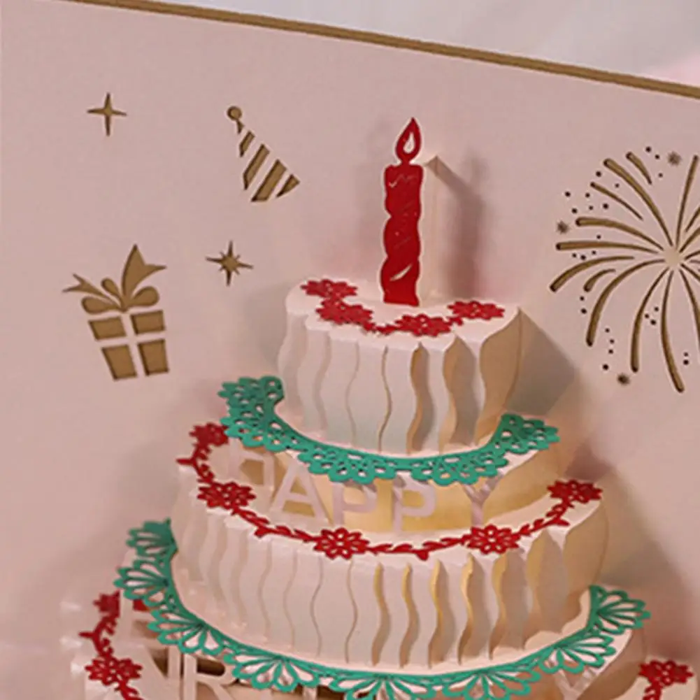 Taking its 3D effect birthday cake shape design, this card has a three-dimensional feel and a beautiful, realistic colour scheme. The folding design is very easy to carry.