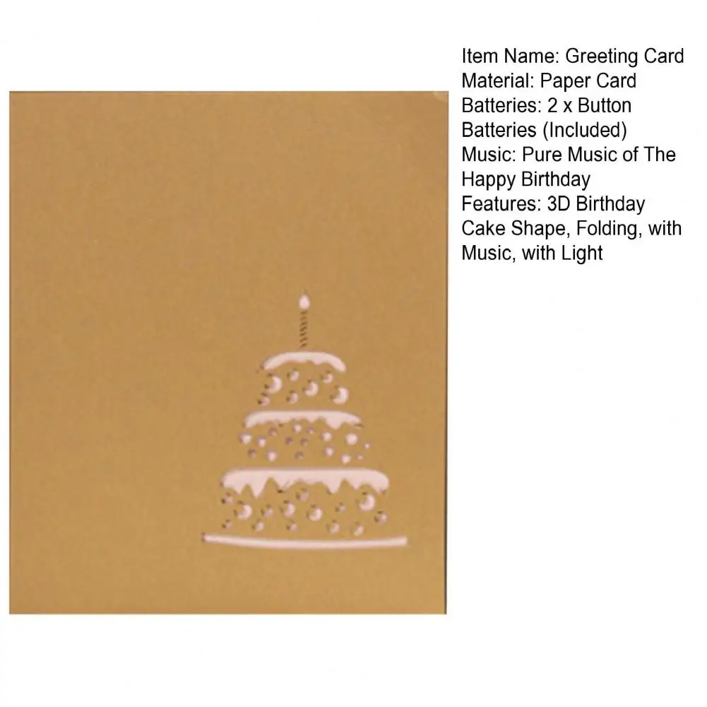 Features: 3D Birthday Cake Shape, Folding, with Music, with Light